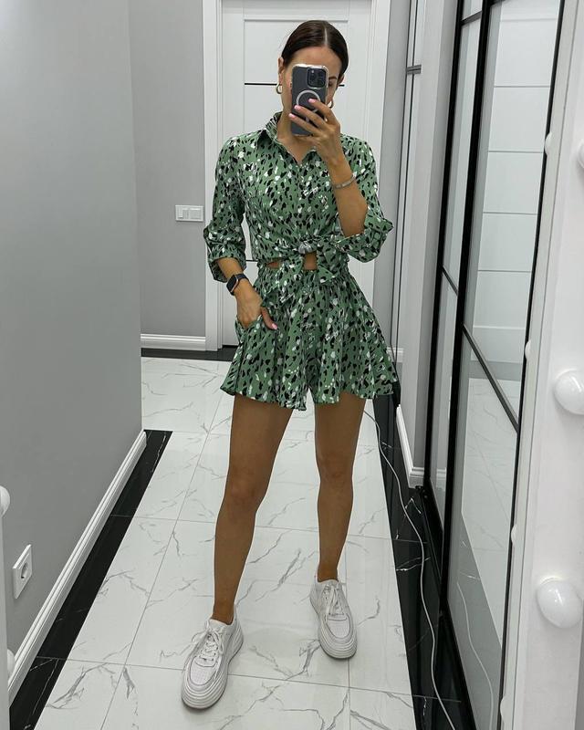 Костюм юбка-шорты и рубашка Материал: софт. Цвет: олива, Размер: S-M, 🔥 Перед заказом уточняйте все детали ⛔⛔⛔