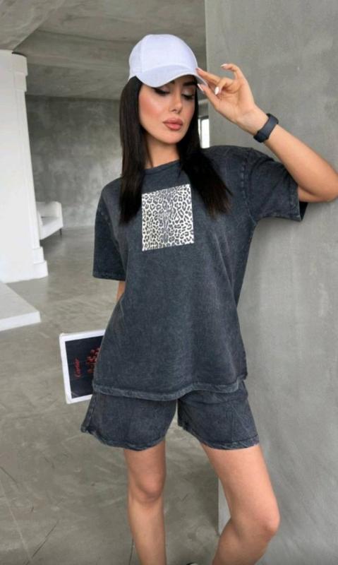 Костюм варенка футболка и шорты с принтом лео со стразами