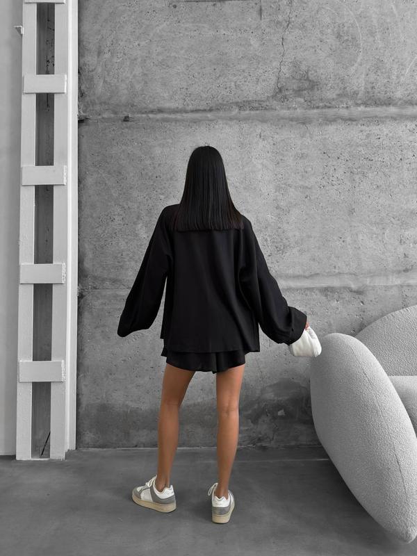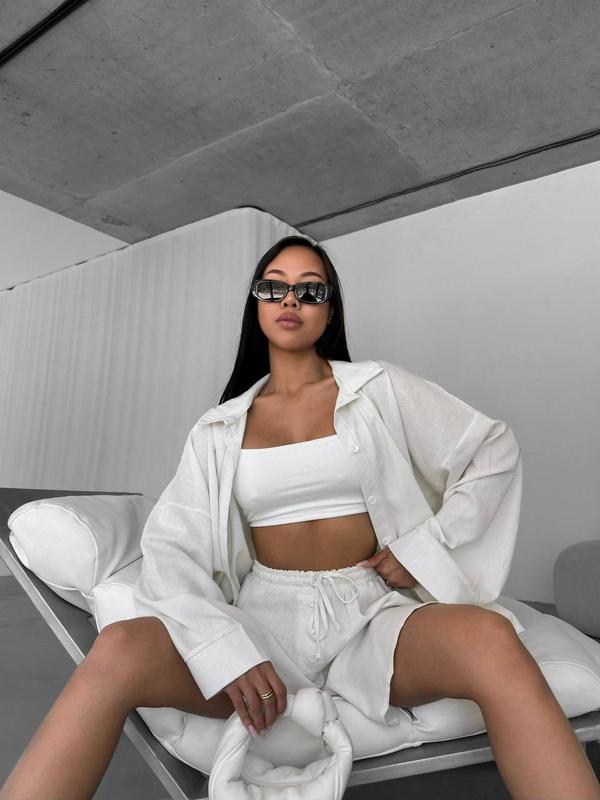 Хит продажи этого сезона - стильные костюмчики из натуральной ткани в актуальных, трендовых цветах. Очень удобная и практичная, рубашка свободного кроя на пуговицах, шорты на резинке декорированы пуговицами. Супер качество!