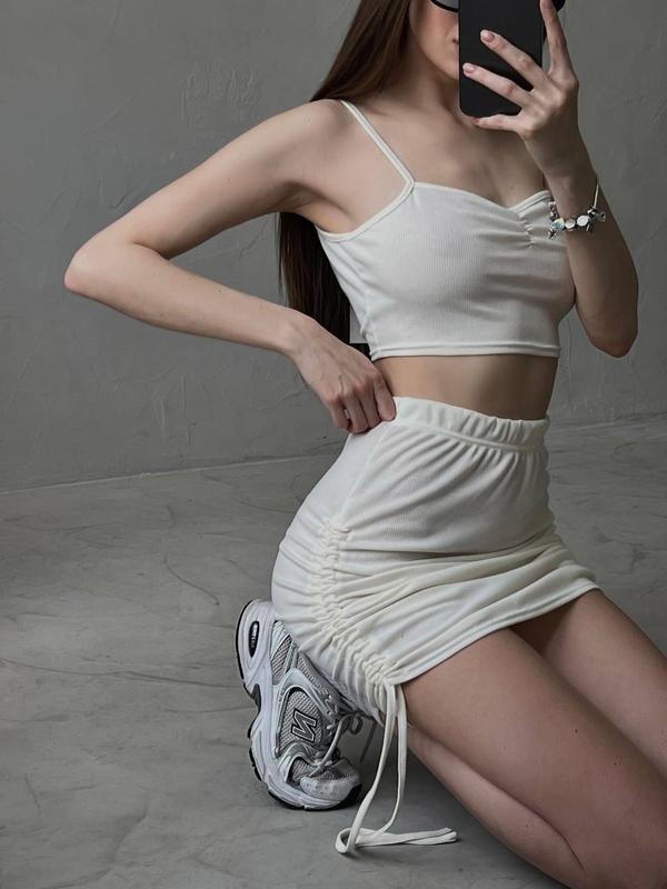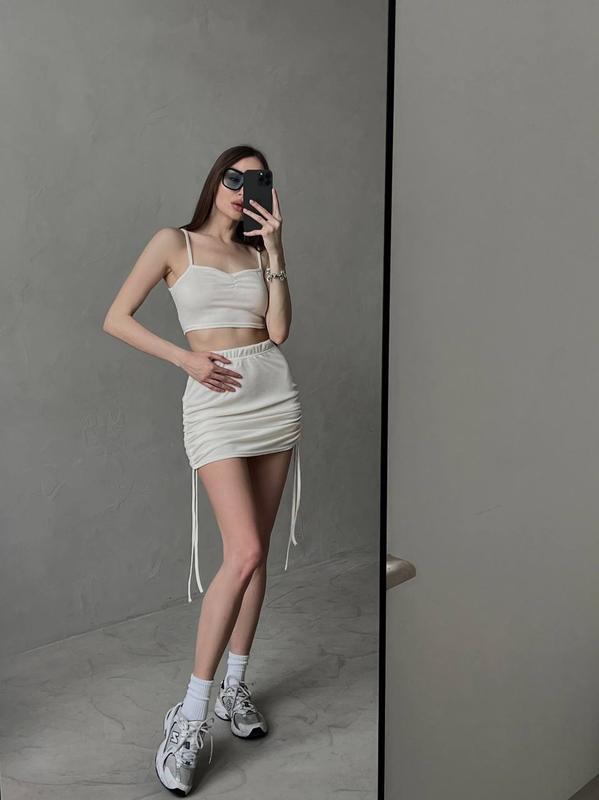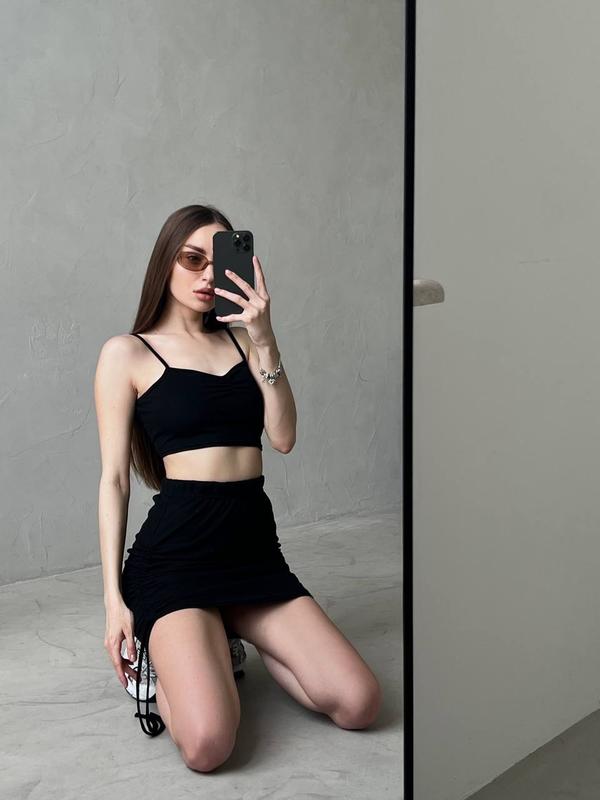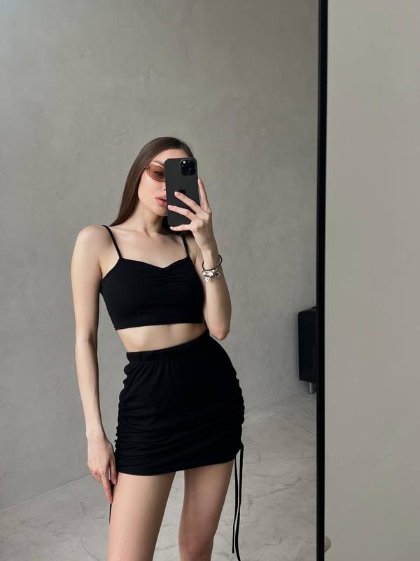 💬Стильный обтягивающий костюм: топ со сборками и юбка с затяжками💕
