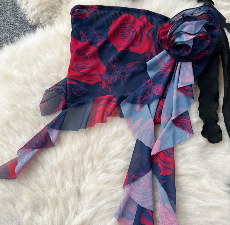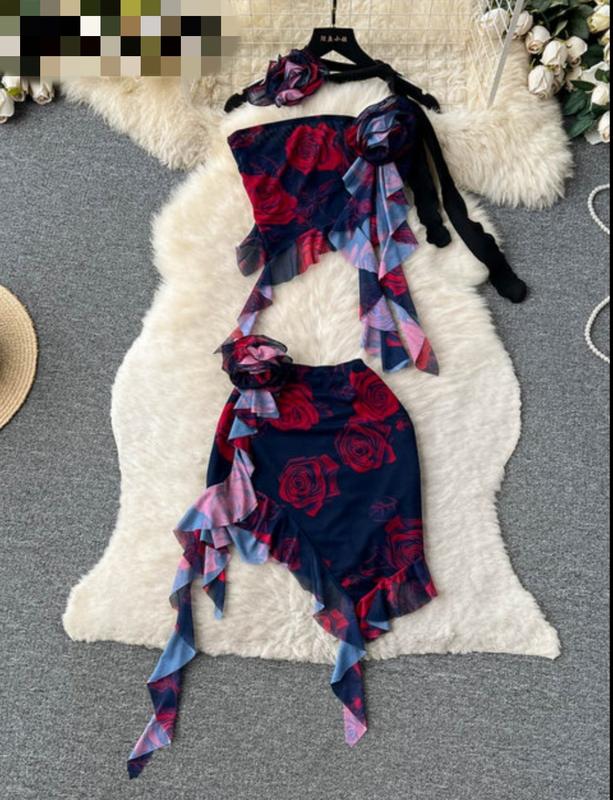 Женственный сексуальный костюм с юбкой миди и топом на завязках