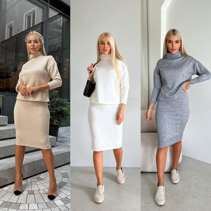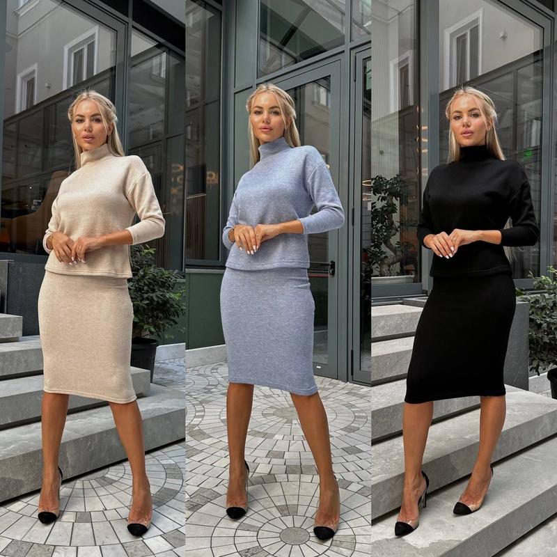 Женский теплый космюм с юбкой миди ангора осень деми зима