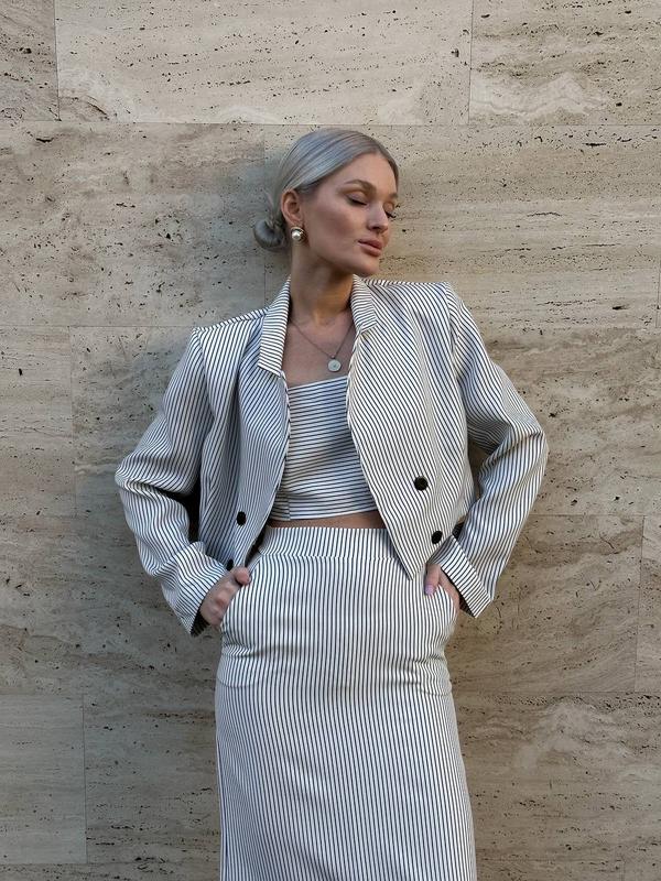 Комплект из жакета, юбки макси и топа.
