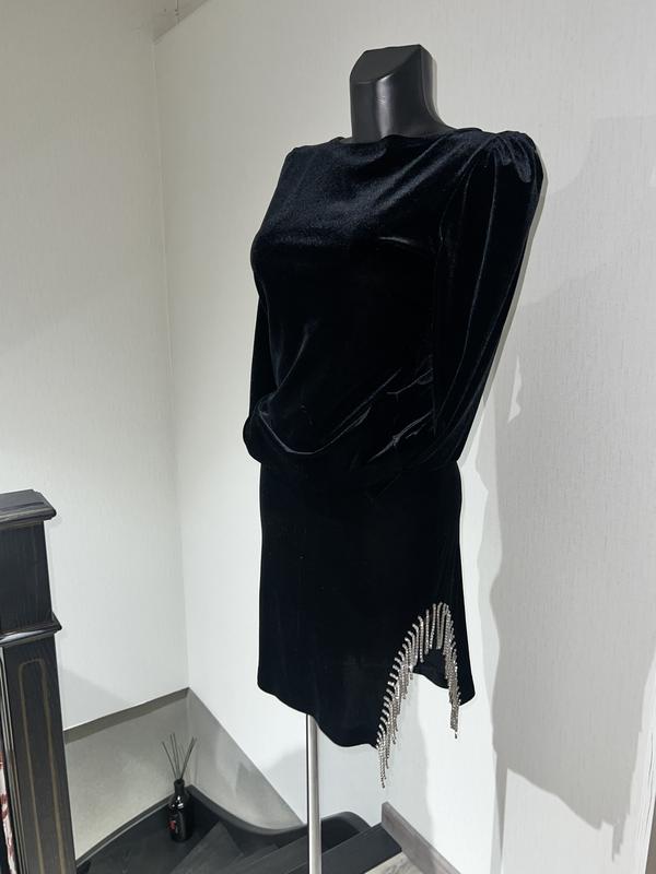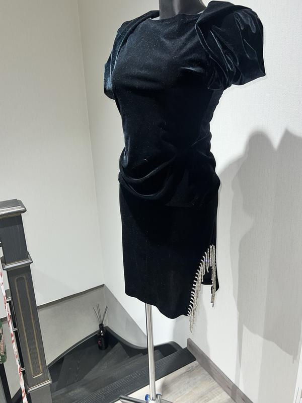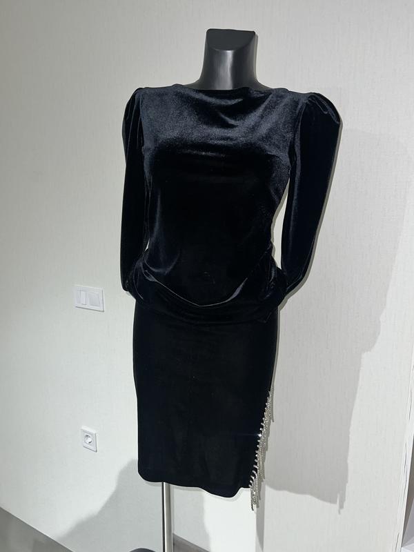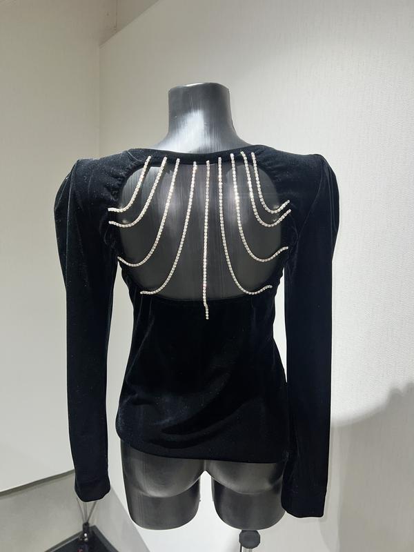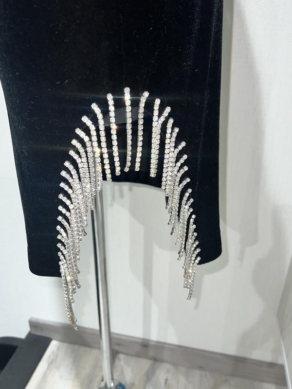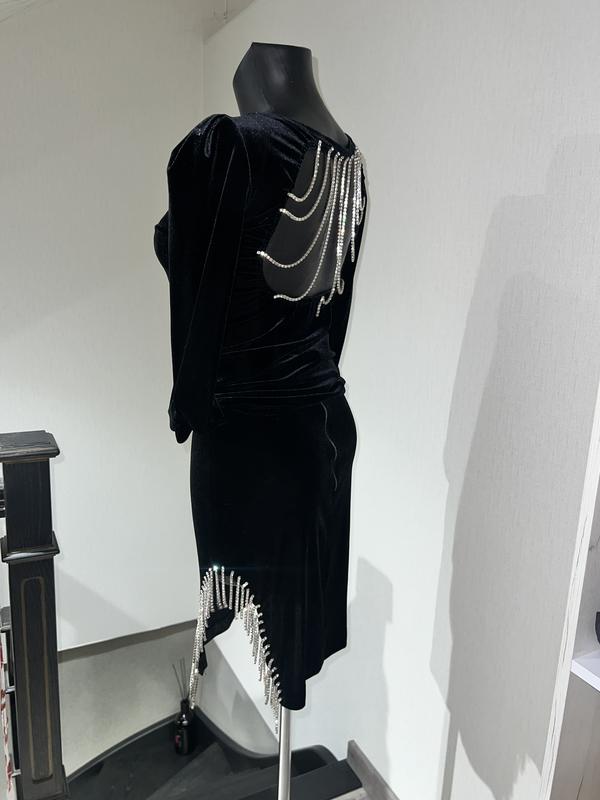 Изысканный вечерний костюм со стразами цепочками в черном бархати