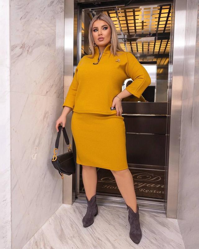 Стильный комплект-двойка состоит из юбки и кофты. Кофта свободно садится по фигуре и хорошо защищает от холода. Облегающая юбка миди подчеркивает женственный силуэт, но не сковывает движений. Низ костюма имеет высокую посадку и мягкий пояс на резинке.🛍️