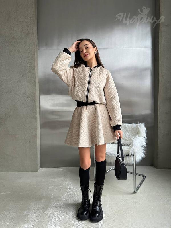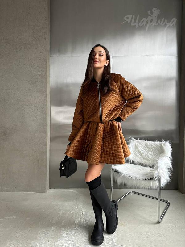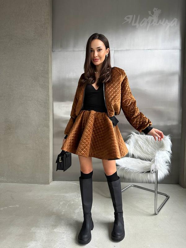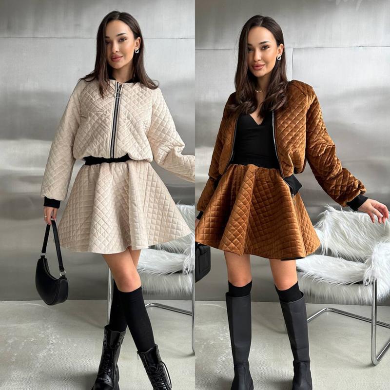 Костюм двойка, куртка + юбка из бархатистой стежки
