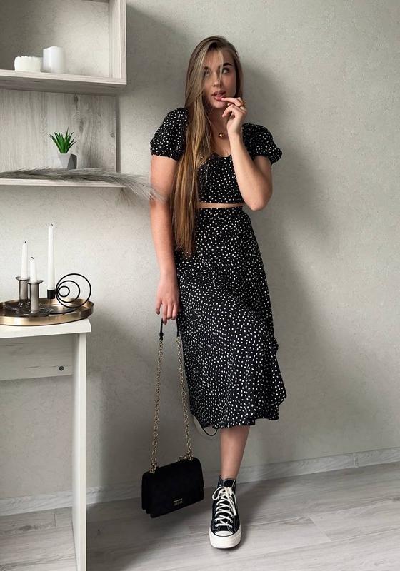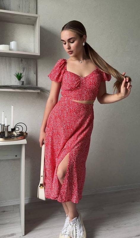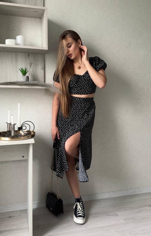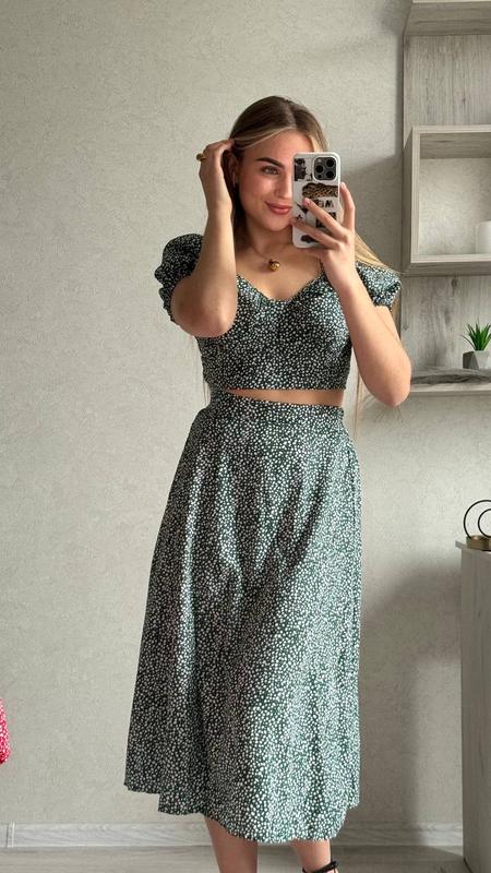 В наличии 💣✔️Костюм(топ+юбка)✔️Мод.472✔️Размер:42-46,48-50✔️Тканина: софт✔️Цвет: черный, красный, зеленый ✔️Цена: 640 грн