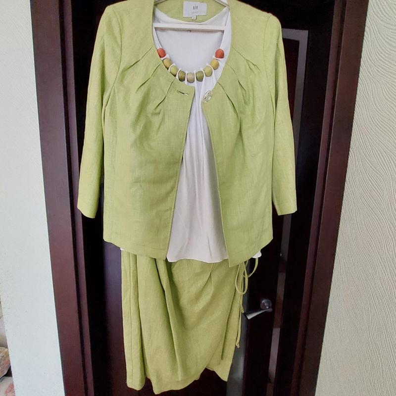 Костюм тройка (юбка, топ, жакет), натуральная ткань. Приятный летний фисташковый цвет, подойдет как для праздника так и на каждый день.