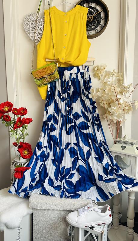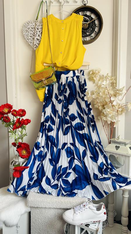 Очень красивый комплект юбка Миди Макс и сочно желтая мягкая натуральная блуза из вискозы