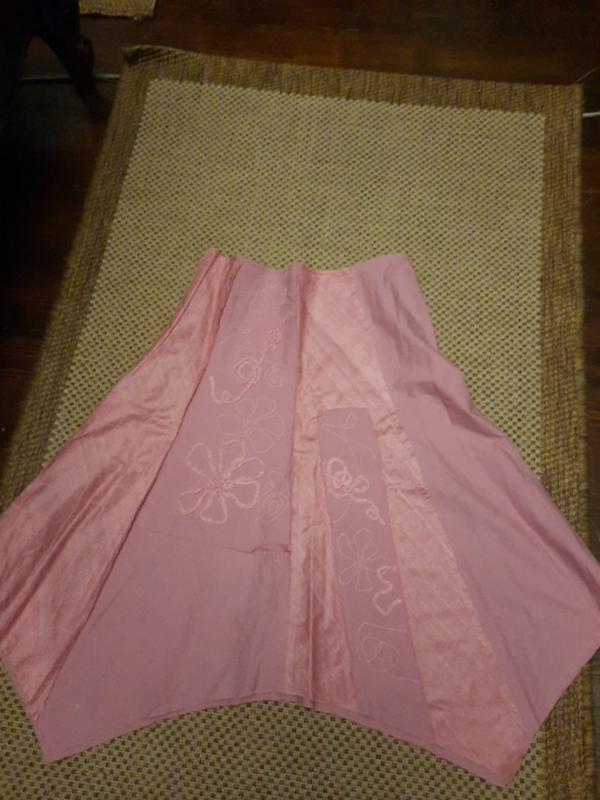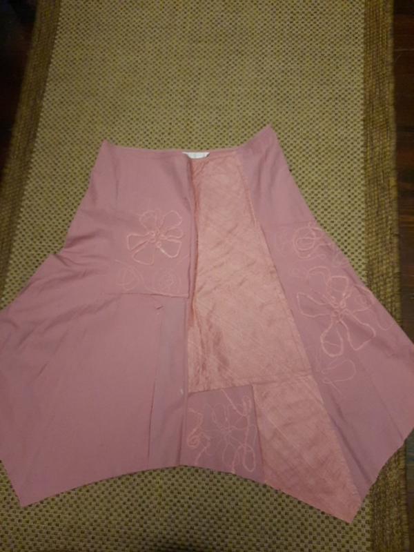 юбка - годе, без подкладки, длина по длинной части клина 70, по короткой - 58 см
