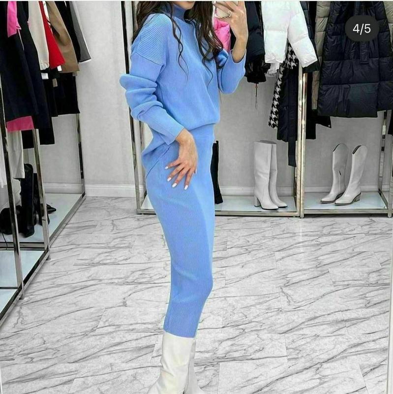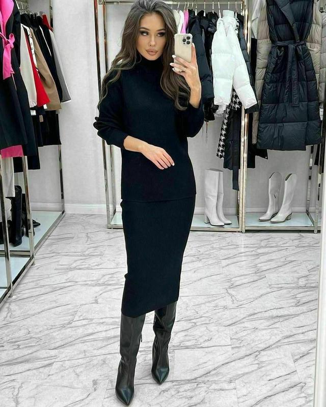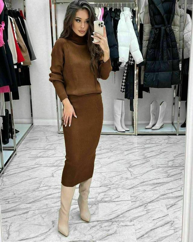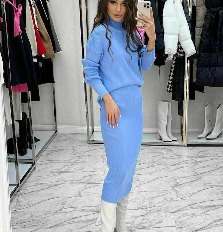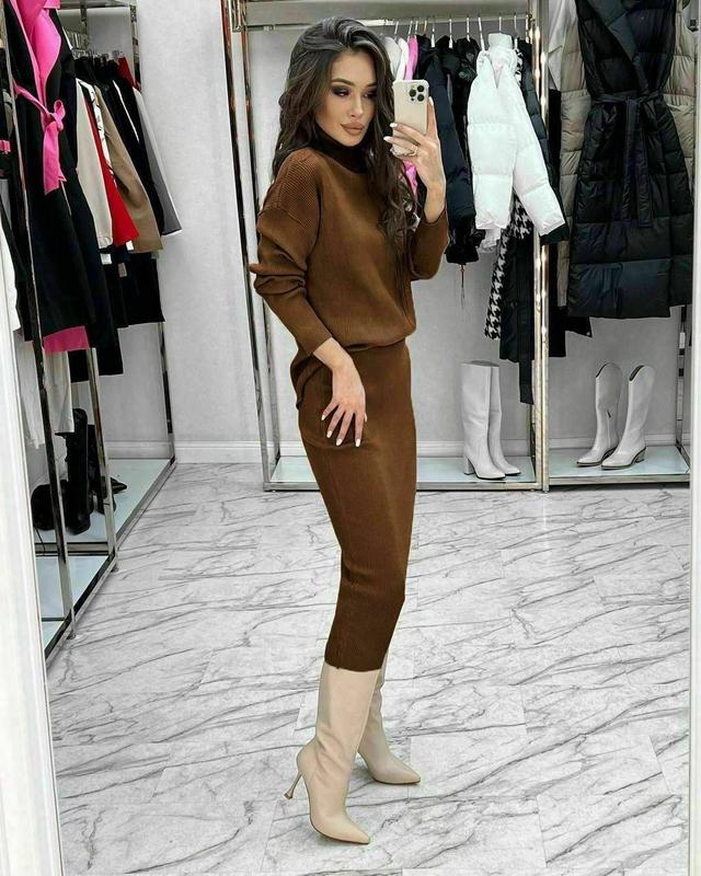 Утепляемся стильно, самый теплый, мягкий и очень нежный костюм. Юбка прямая, свободная кофта, длина меди, тренд этого сезона