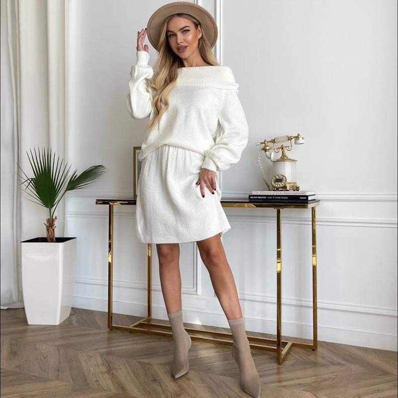 Комплект из приятного к телу трикотажа включает свитер с открытыми плечами и длинным рукавом и юбка прямого кроя. • Размер универсальный 42-48 • Цена 1400 грн Есть видео обзор 9002