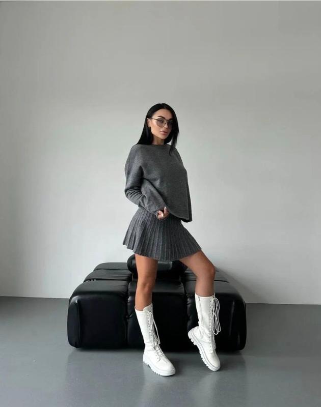 Производство фабричный китайский, качество класса премиум! Костюм, состоящий из свитера и юбки плиссе. это идеальное сочетание комфорта и стиля. Мягкий и приятный на ощупь свитер оверсайз создает легкий, непринужденный образ Юбка классической длины добавляет элегантности и женственности Это комплект, подходящий для любого случая. Стильный, но в то же время удобный ----------------------- Свитер, бюст 60 длина 60 рукав от горловины 67 Юбка талия 35 тянется до 55 Длина 45 Кара