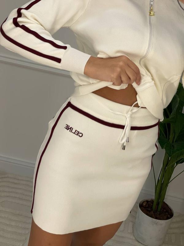 Женский костюм машинной вязки топ и юбка, белый костюм с юбкой, бордовый костюм с юбкой