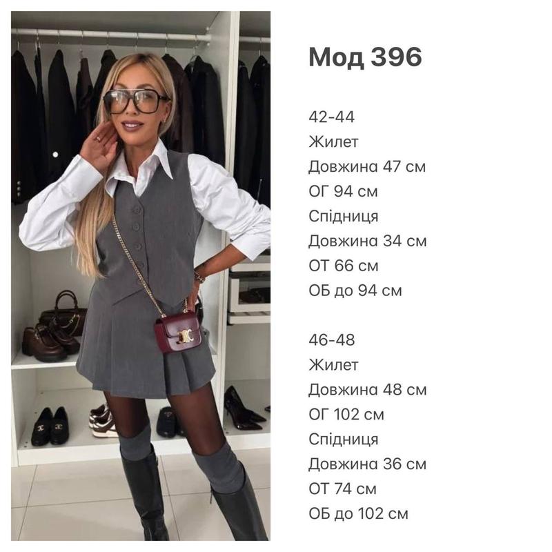арт. id. 396Размер: 42-44, 46-48Тканина: костюмка Цвет: черный, бордо, графит Костюм 2-ка, юбка в длине мини и жилет - идеальный образ
