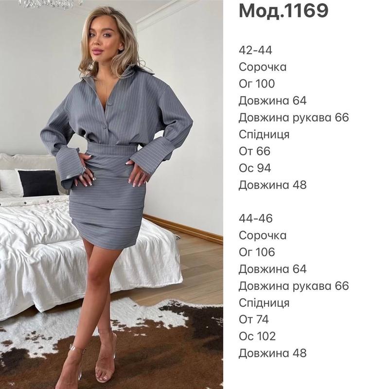 Деловой женский костюм рубашка и юбка мини в полоску классический комплект