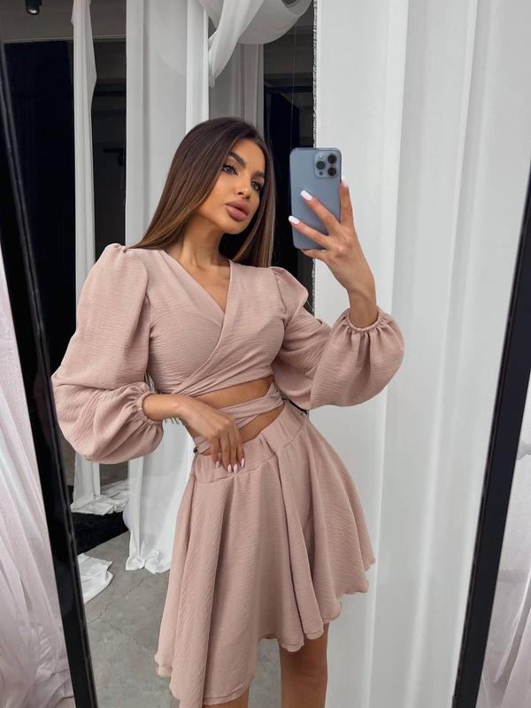 Легкий летний костюм (юбка-шорты) Модель: 175 Размер: универсал (S-L) Цвета: американский креп жатка Цвет: черный; молоко; шоколад; изумруд; светлый беж Уход: ручная стирка до 30° Производство: Украина