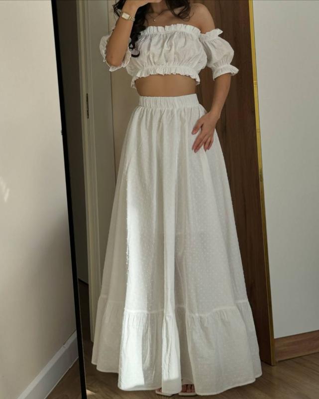 Костюм : блуза + юбка макси Ткань: дорога легкая креп жатка жаккард, Турция Цвет: черный, голубой, белый, беж Размер : XS-S, M-L 🌿 Такой стильный и современный, просто идеальный 😍 Тот самый костюм, который станет беспроигрышным вариантом для любого случая 🌿