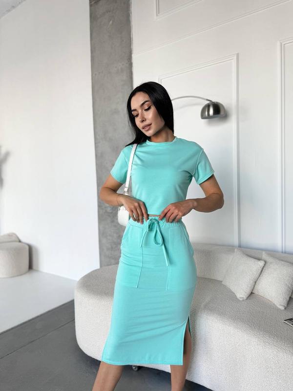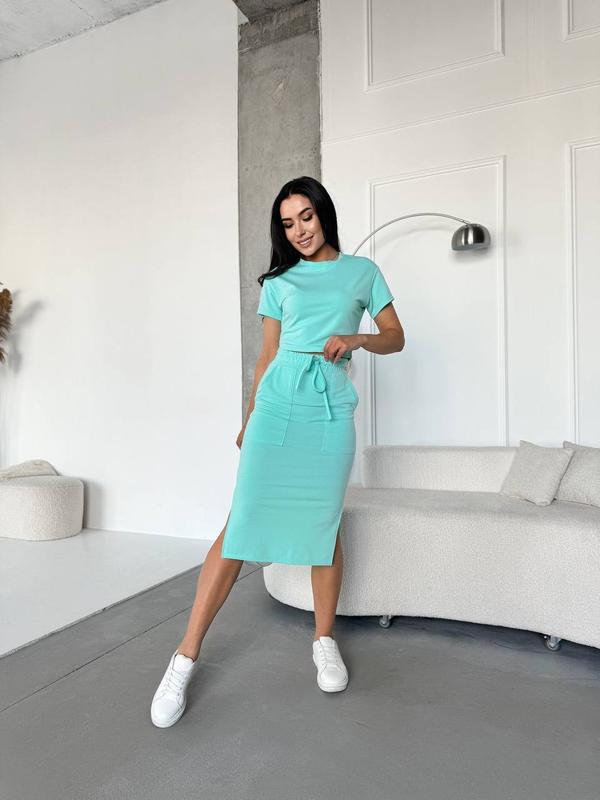 Костюм🥰Мод: 4962-245Тканина: двуниткаКолір: беж, мʼ ята, сірий, чорний, малина Розмір: 42-44, 46-48