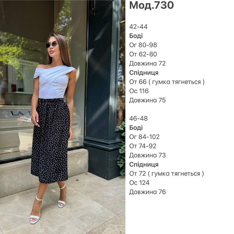 🧩Костюм ( юбка + боди),ДН!!️ мод.730 rudткань: боди - микродайвинг, юбка - софт размеры: 42-44, 46-48цвета: белый+черный, белый+масло 💸Цена: 840 грн.