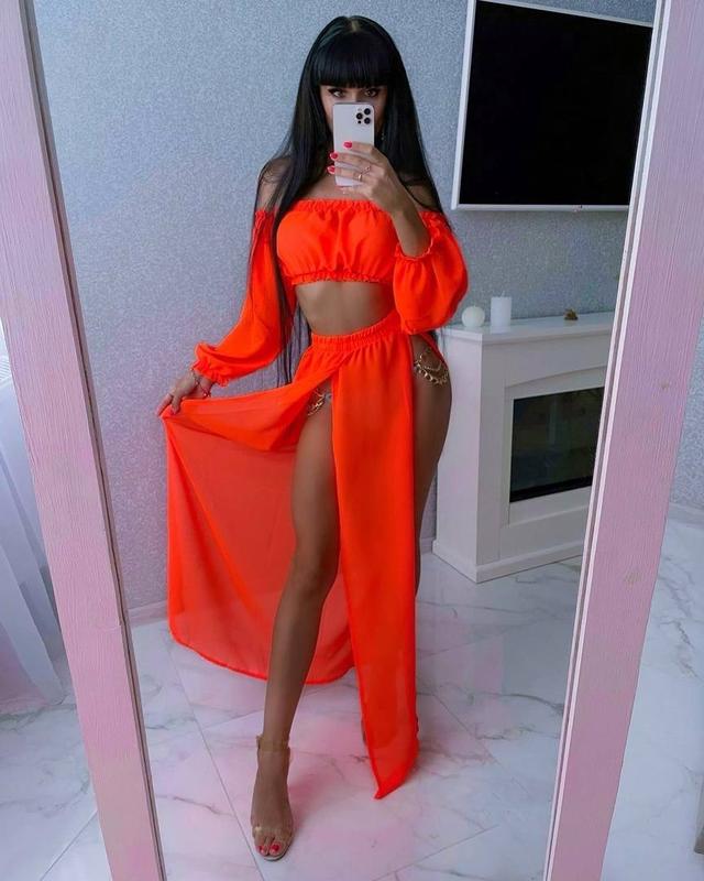 Яскравий шифоновий пляжний комплект жіночий костюм топ і довга спідниця з розрізами