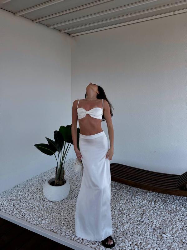 Жіночий літній білий костюм двійка топ бра та спідниця юбка максі