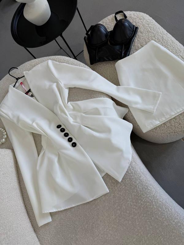 NEW🔝 ФОТО РЕАЛ‼️ 🔸Костюм (блейзер+юбка) ▪️Модель: 1621блабл ▪️Ткань: костюмка LUX (Турция) ▪️Размер: 42-44; 46-48 ▪️Цвет: черный, молоко, шоколад Супер качество по низкой цене🔥 💬 MUST HAVE сезона 2025🔝 Акцентный ретро костюм: удлиненный приталенный блейзер «клеш» и мини юбка. Низ блейзера объемный, талия узкая, есть подплечники😍 Мини юбка по фигуре, имеет потайную молнию. Костюм создает идеальный силуэт и очень дорого смотрится🔥 Качественная плотная ткань. Без подкладки❗️ Параметры: 42-44 / 46-48 ОГ 87-90 см / 92-95 см ОТ 65-68 / 70-74 см ОБ 87-90 см / 92-95 см Длина юбки: 39 см / 40 см Длина пиджака: 72 см / 74 см