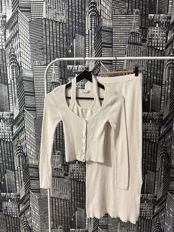 Вʼязаний жіночій костюм stradivarius вʼязаний бежевий костюм в рубчик stradivarius вʼязана...