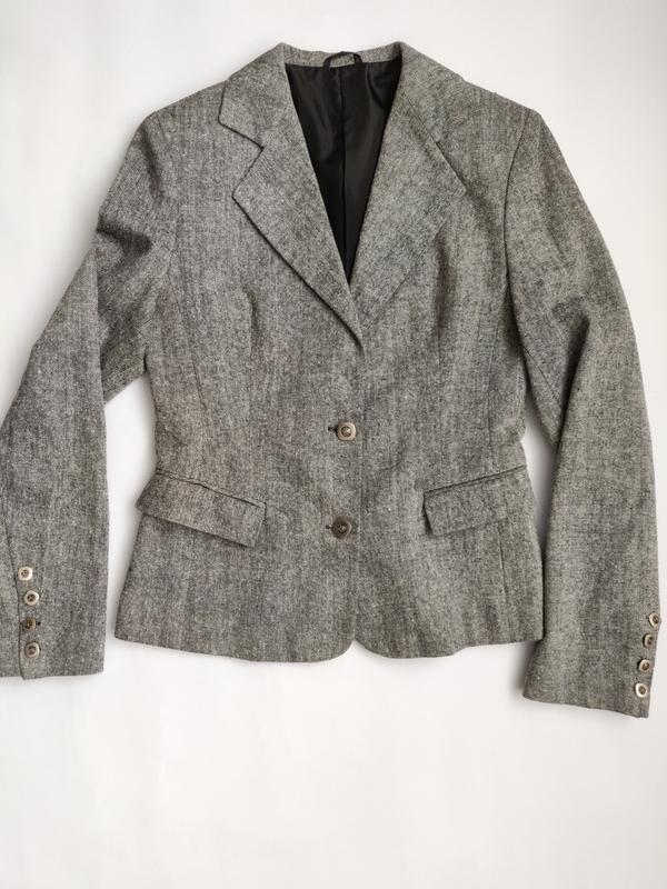 Пиджак жакет серый твид меланж шерсть 50% Индивидуальный пошив вдохновленный последними тенденциями моды 👌 Качественные материалы и фурнитура. Состояние идеальное, новой вещи. Цена указана за пиджак‼️ В комплекте имеется трендовая ярусная юбка (последнее фото, продается отдельно, смотрите соседнее объявление). Длина 63 Плечи 38 Рукав 61 ПОГ 44 ПОТ 39 низ 47.5 состав: 50% шерсть, 50% полиэстер, подкладка 100% вискоза.