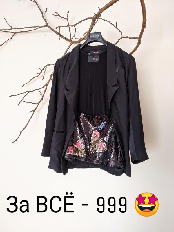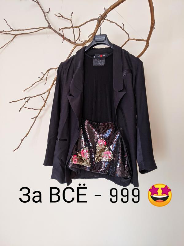 Футболка SALLIE SAHNE. Ткань сетка..... очень эластичная на ощупь как "прорезиненная" за счёт этого можете затяжек не боятся.... Качество отличное. Если отдельно то стоимость 275 грн💣💣💣 Юбка, Италия LUMA. Черная пайетка на подкладке, ручная вышивка... Можно под шпильки 👠👠 а можно с грубыми ботинками и косухай...Отдельно .650 грн. 🔥🔥🔥 Жакет DESEGNERS REMIX черный с вставками на рукавах....Тренд 2021г.... Универсальная вещь, можете смело надевать под, что угодно...🤩🤩🤩 Отдельно 299 грн