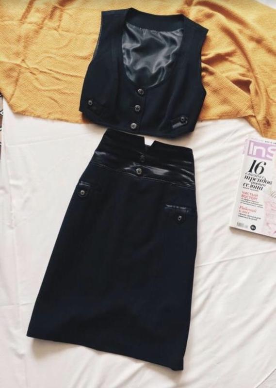 Женский классический костюм, жилет и юбка. Бренд Петро Сорока{Petro Soroka}. Юбка прямая, сзади стильная завязка. Можно надевать под гольфы, рубашки, футболки.