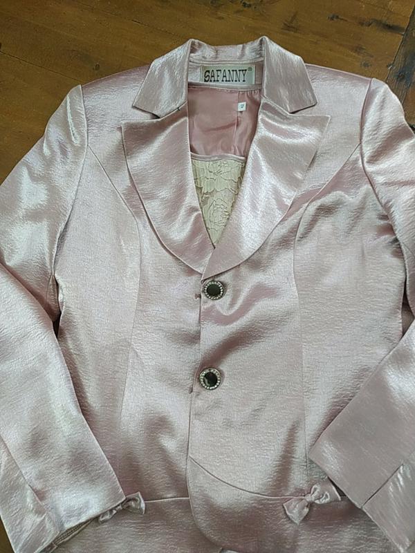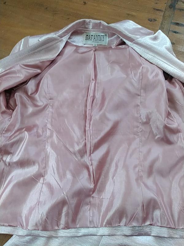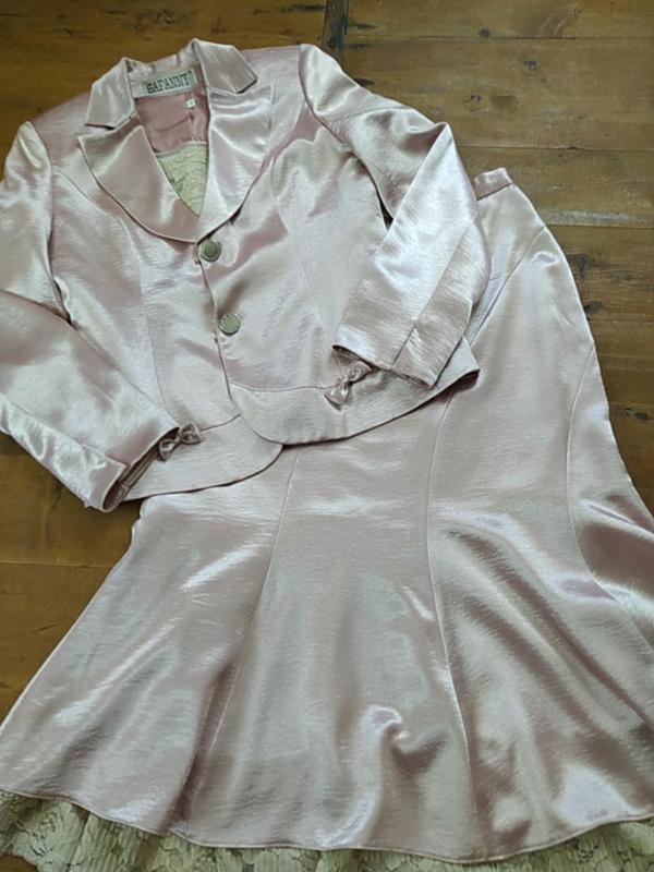 Красивенный костюм нарядный тройка, жакет пот 43, Пог 48, рукав 62, длина 63, юбка пот 38, длина 80, поб 52, желетка Пог 48, длина 52, цвет как на последнем фото, розовый пудровый, все с подкладкой, очень качественный пошив и ткань