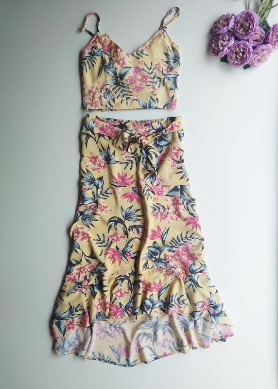 Летний костюм в цветочный принт от H&M : топ и юбка.