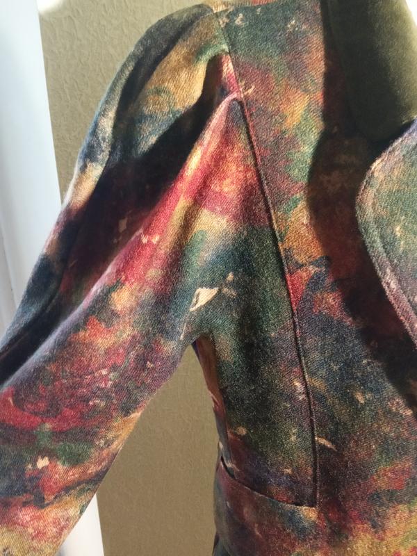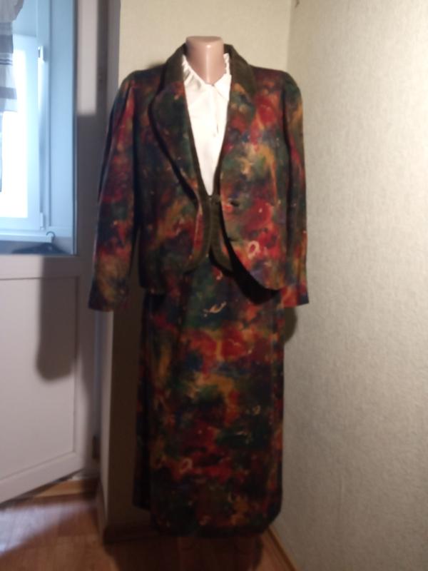 Жакет. Пог 50, пот 49, внизу 53см., длина рукава 59, ширина плечей 38,два кармана на подкладке, длина жакета 56см.