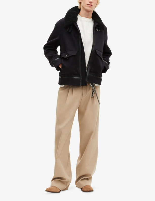 Trucker Diagonal-Striped Wool-Blend Jacket